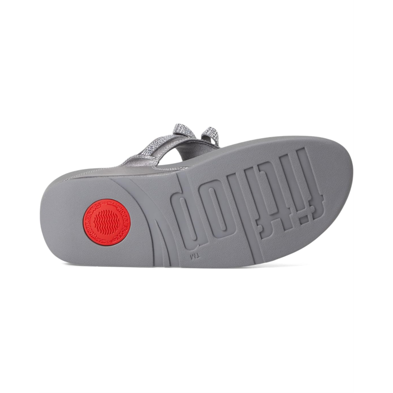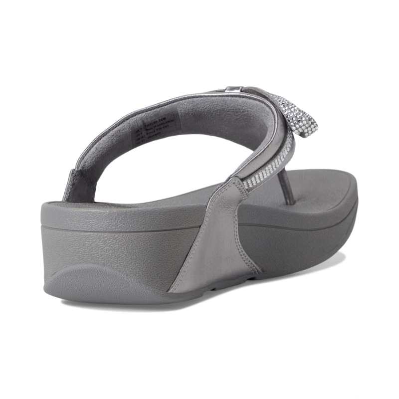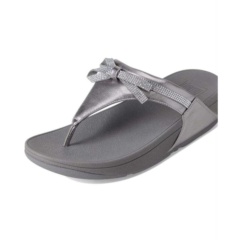 Walk into sparkle wearing FitFlop Lulu Glitz-bow Leather Toe-post Sandals. These bestselling beauties feature a signature triangular vamp, sleek thong strap, and padded leather uppers topped with a glam tonal crystal bow that turns every step into a statement. The smooth leather upper is lined in soft polyester, while the slip-on design keeps your stride effortless and elegant. Beneath it all? FitFlop''s legendary Microwobbleboard midsoles, engineered for pressure diffusion and superior cushioning that feels like walking on clouds. With a durable rubber insole and outsole, they''re made for strolling from sunup to sundown in total comfort.