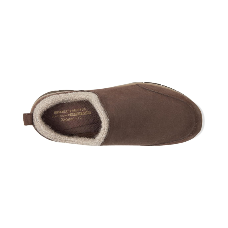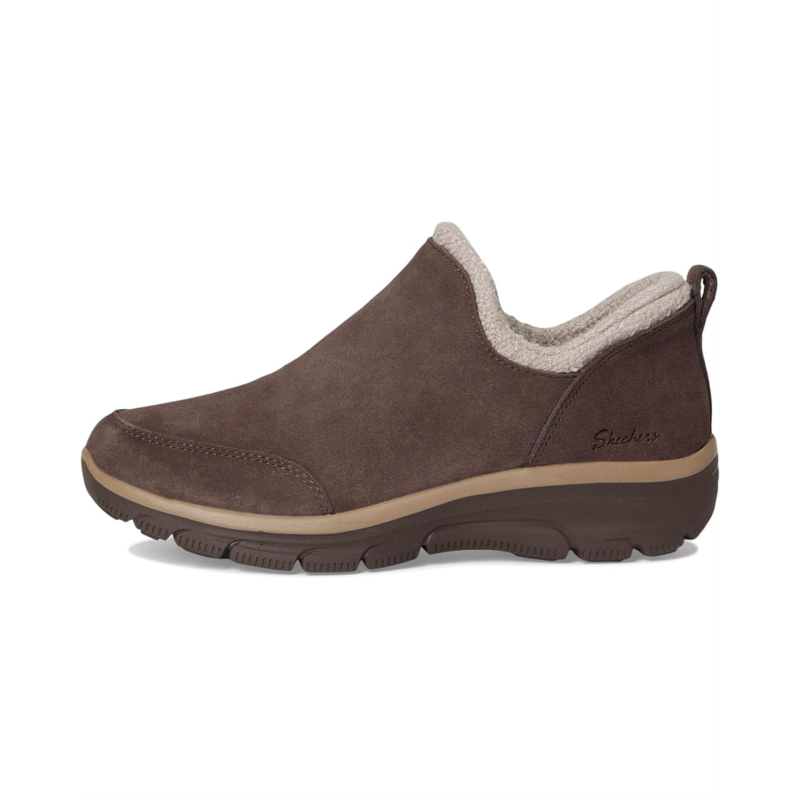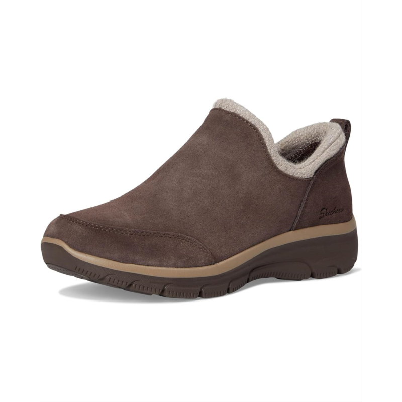 Get warm comfort and smart, versatile style instantly choosing the SKECHERS Easy Going - Sweet Behavior. Soft suede upper in a low ankle-height slip-on casual cool weather bootie with chenille collar trim and Skechers Air-Cooled Memory Foam cushioned comfort insole. It has a bootie design with cutaway sides for flexible, easy-wearing comfort.