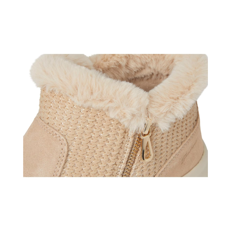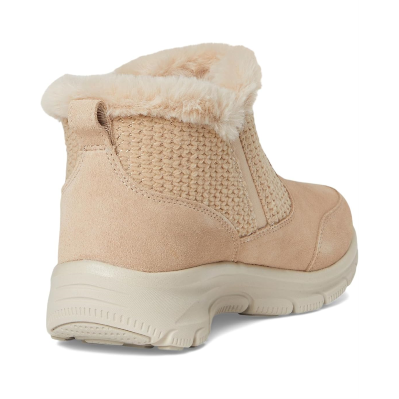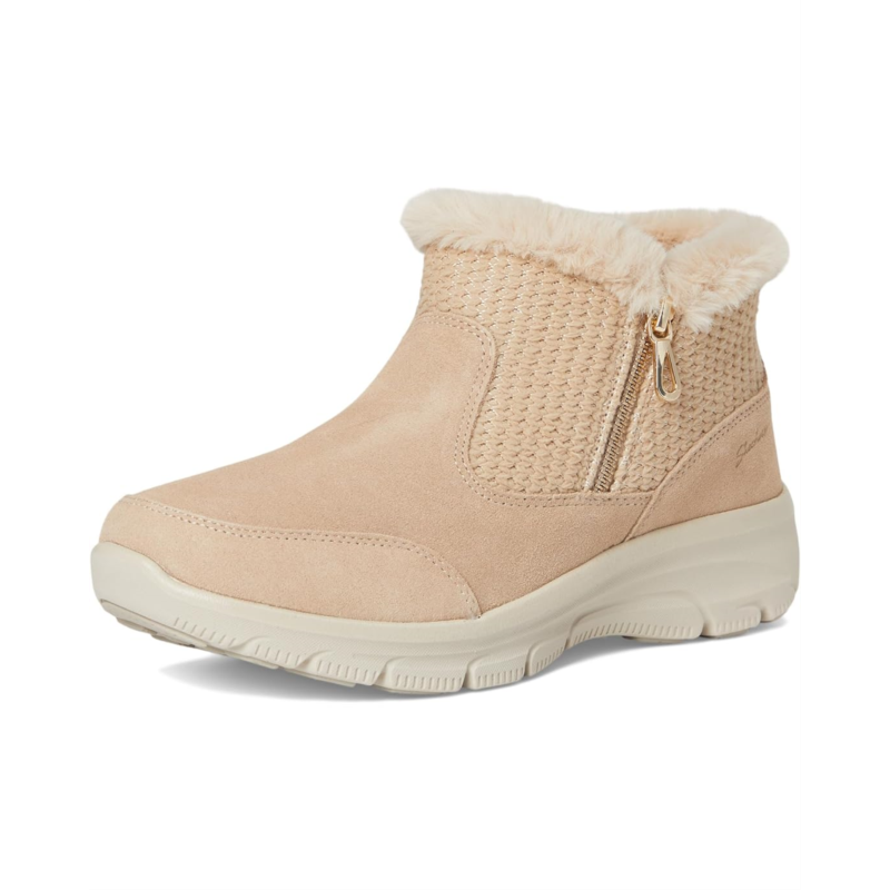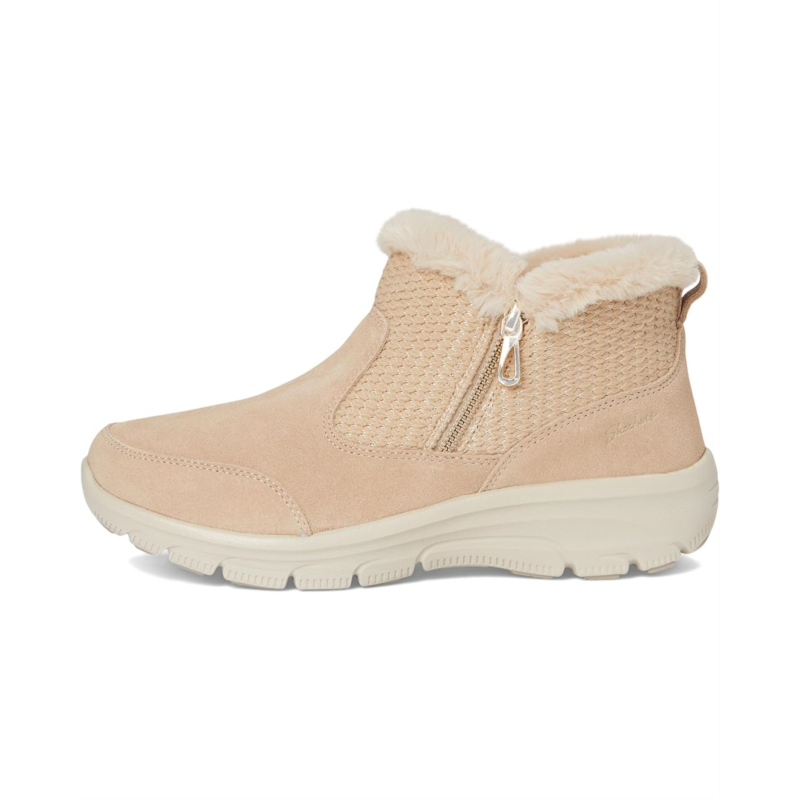 Style that feels like a hug, SKECHERS Easy Going - Gentle Fall. Designed to keep you warm and on-trend, this ankle-high beauty features a soft suede and sweater knit upper accented with a plush faux-fur trim that screams cozy season goals. The zippered side closure makes slipping in and out a breeze, while the moc toe and wedge heel add just the right touch of laid-back sophistication. Inside, the SKECHERS Air-Cooled Memory Foam cushioned insole hugs your feet in unmatched comfort, and the durable rubber outsole ensures grip with every step.