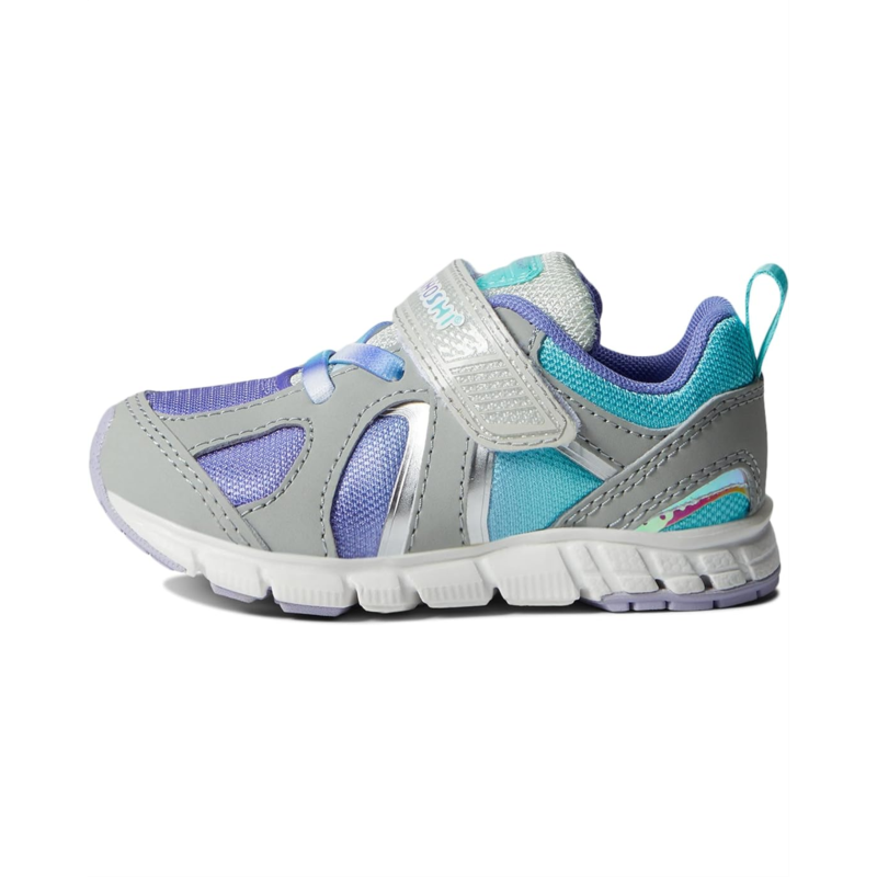 Their spectrum of style is even wider in the Rainbow sneaker from Tsukihoshi Kids! This lightweight sneaker features a hook-and-loop ankle strap closure with an elasticized false-lace, a machine washable synthetic leather and nylon mesh upper, heel tab in back for easy entry, and firm heel counter to support active feet.