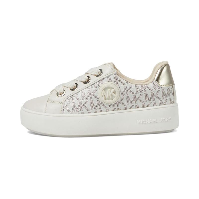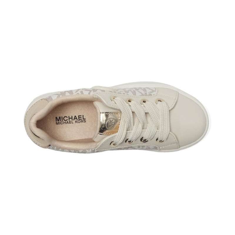 Fashion-forward flair meets comfort in the Ilse MICHAEL Michael Kors Kids Jordana Audrey. Elevate every step with its trendy lace-up design and breathable PU upper paired with a cozy polyester lining. Perfect for all-day wear, it features a rubber blend outsole for durability and a cushioned rubber insole ensuring every stride is comfortable. Whether for playdates or outings, the round toe design adds a stylish finish to any ensemble.