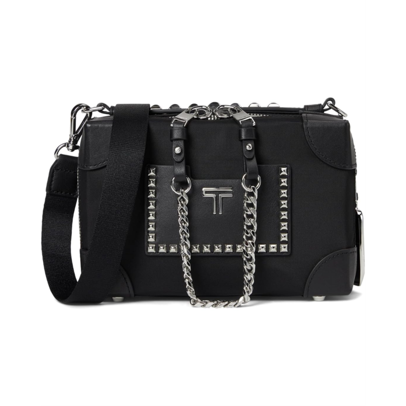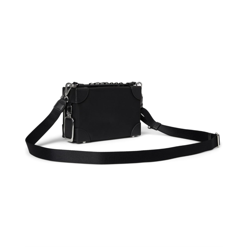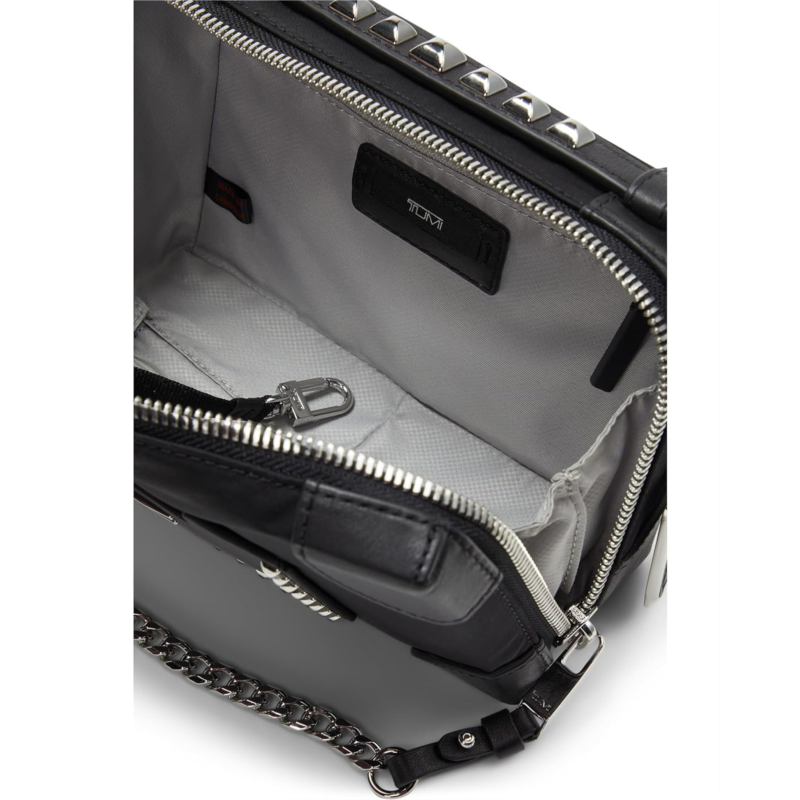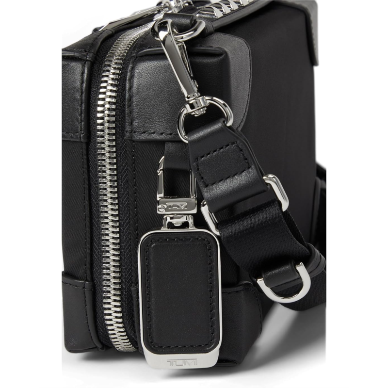 Travel in style and live in motion carrying Tumi Small Soft Trunk Crossbody. Inspired by TUMI''s rich travel legacy, this compact crossbody brings heritage craftsmanship into the now with its sleek boxed silhouette, premium leather accents, and durable nylon construction. Double-zipper entry reveals a thoughtfully designed interior featuring a leather card pocket, zippered pocket, snap-closure compartment, and a handy key leash for effortless organization. With its removable adjustable crossbody strap and collapsible leather top handle, you can carry it your way, hands-free or handheld. Polished leather corners, four protective metal feet, and a monogrammable detachable leather charm add timeless sophistication, while the hidden TUMI Tracer ensures peace of mind wherever life takes you.