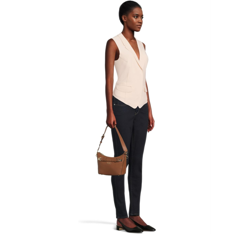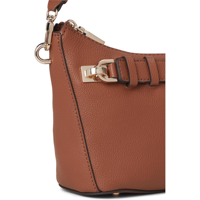 The GUESS Gregoria Top Zip Shoulder Bag in eco pebbled polyurethane features a belting detail. Its zippered main compartment opens to a zippered pocket and three card slips. Designed with an adjustable and detachable shoulder strap, this stylish shoulder bag is a great choice to complement your casual outfits and party looks.