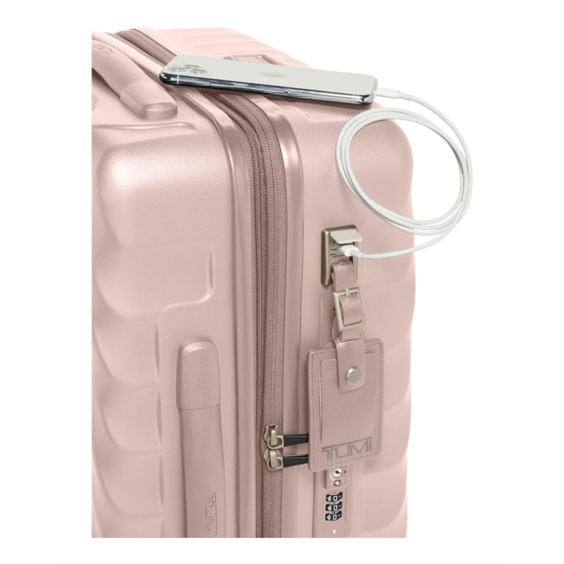 From your family vacations to business trips, the Tumi 19 Degree International Expandable 4 Wheeled Carry On bag will become your favorite travel companion. Designed with features like a 3-stage telescoping handle, TUMI tracer, built-in USB port, luggage tag, and integrated TSA lock, this travel case will make your travels full of convenience. With its four recessed dual spinner wheels, retractable top and side carry handles, and 3-stage telescoping handle, you can easily move it around. Made from polycarbonate material for durability, this trolley case features compression straps for added functionality.