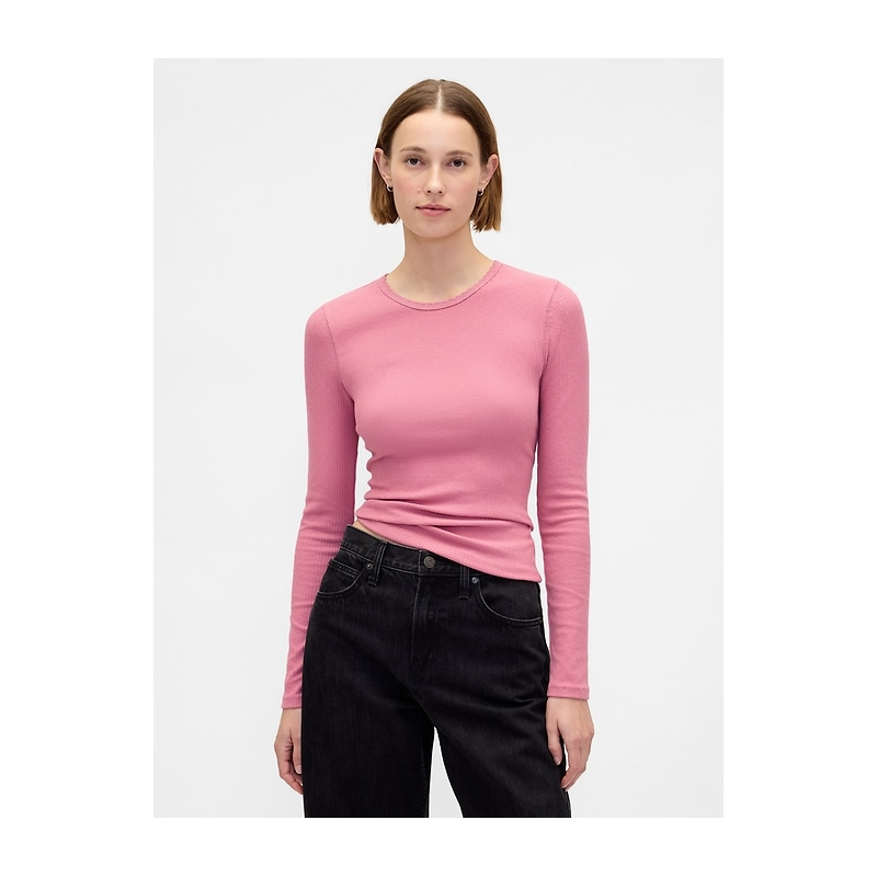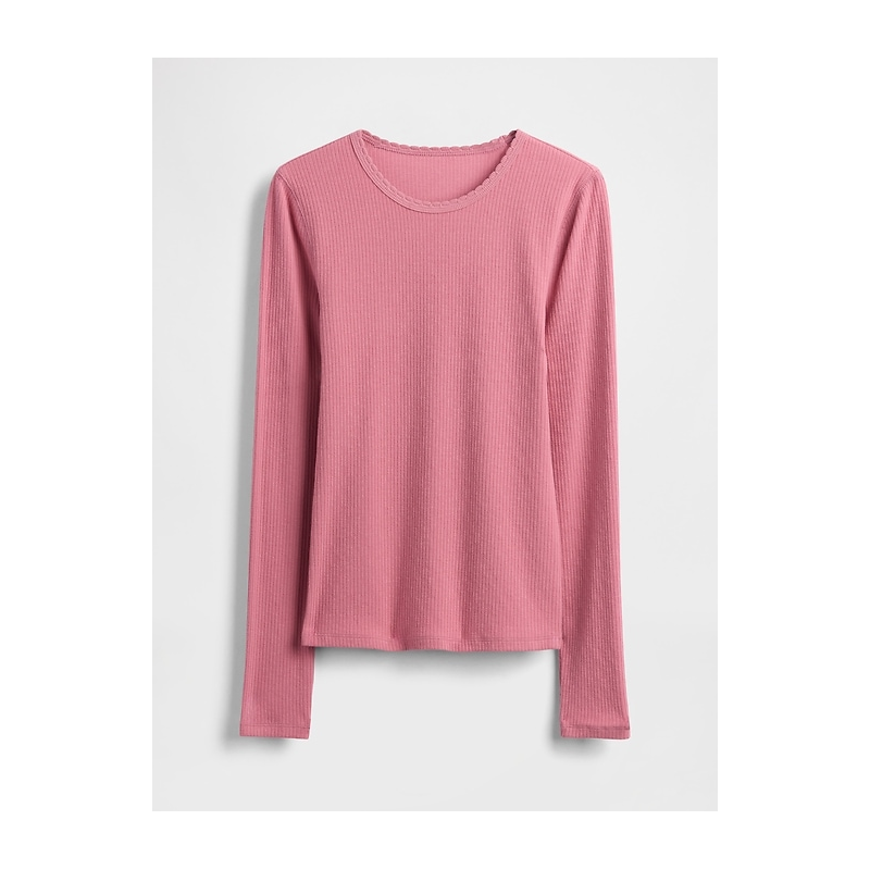 - Soft, stretch pointelle ribbed knit T-shirt. In a slightly cropped length.
