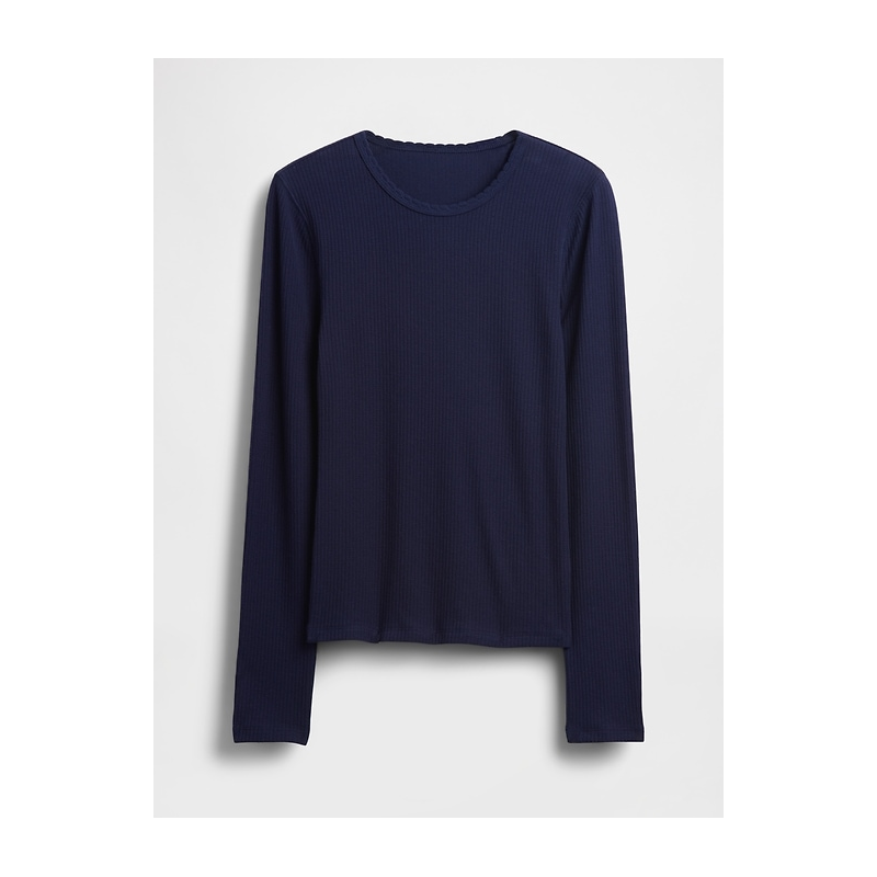 - Soft, stretch pointelle ribbed knit T-shirt. In a slightly cropped length.