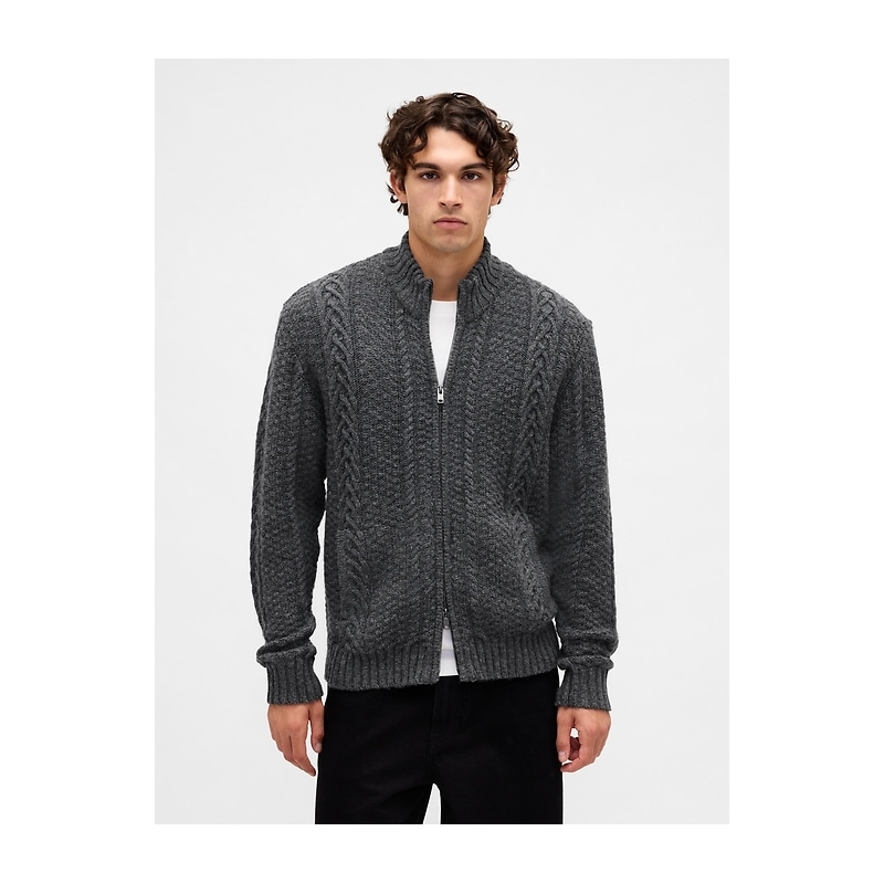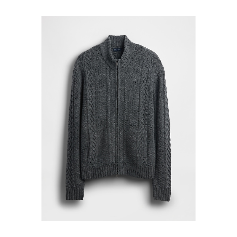 [US] Gap Wool-Blend Cable-Knit Zip Cardigan Sweater