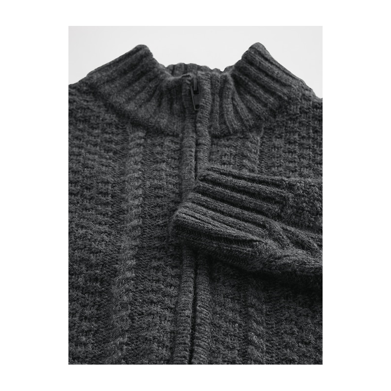 - Soft, heavyweight wool-blend cable-knit full-zip cardigan sweater.