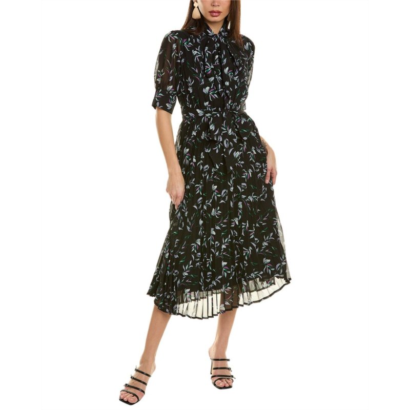 Introducing the ''Gracia Scarf Neck Midi Dress'' from the uniquely inventive and modern brand, Gracia. This stunning dress features a scarf neck in black multicolor, with an elasticized waist, elbow-length sleeves, and an accordion pleated skirt. Approximately 49 inches from shoulder to hem, this dress is easy to slip on and made from 100% polyester. Hand wash recommended. Imported. Perfect for a night out or any special occasion, this dress will surely turn heads wherever you go.