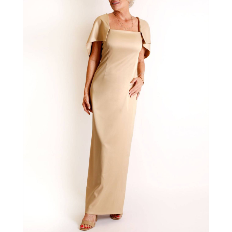 Style this maxi with your favorite statement necklace and sandals for the perfect look.Step into understated elegance with the Flora Gown by Camilyn Beth, a stunning choice in teal satin for any special occasion. Emphasizing an elegant sheath silhouette and short sleeves, this gown is crafted from luxurious stretch satin or peau de soie and designed in Florida, manufactured in NYC. The dress features a distinctive bow back detail, bra friendly, and an invisible zip closure for a chic and secure fit. Care instructions recommend dry clean only to maintain its exquisite fabric and finish.