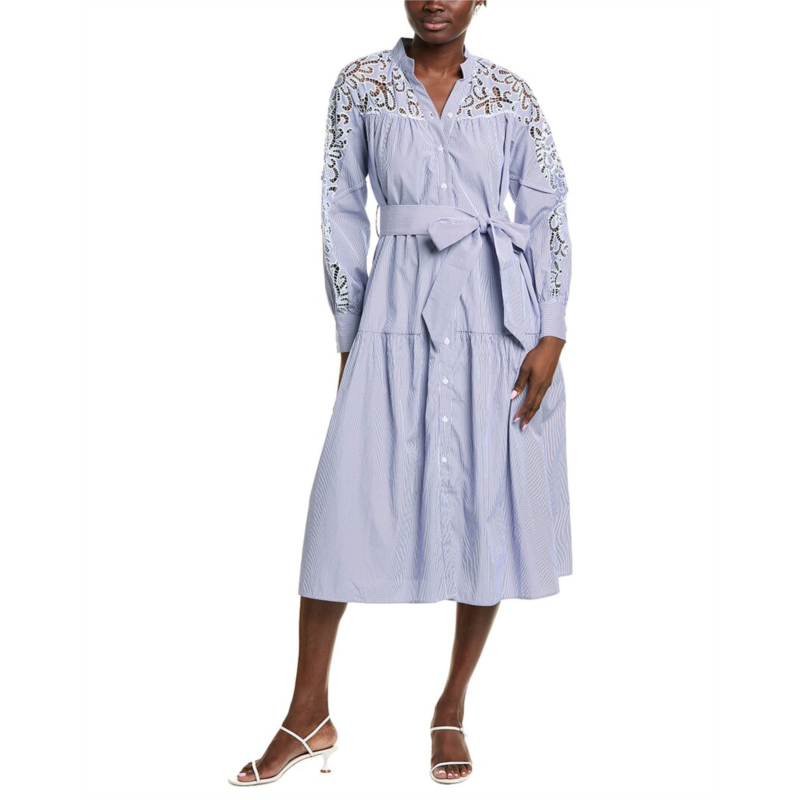 Introducing the Gracia Midi Dress, a stunning addition to your wardrobe from the uniquely inventive and modern brand, Gracia. This beautiful midi dress in blue features floral lace embroidery, button cuffs, and a fabric waist tie for a flattering fit. With a button front closure and made of 100% polyester, this dress is not only stylish but also easy to care for with hand washing. Imported and measuring approximately 46 inches from shoulder to hem, this Gracia Midi Dress is perfect for any occasion.