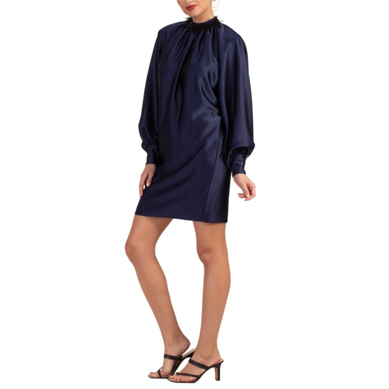 Elevate your wardrobe with the Trina Turk Terrestrial Dress. This stunning dress from the renowned brand Trina Turk features a contemporary and colorful design inspired by California''s multicultural mix. In a mesmerizing night sky color, this dress boasts a high neckline with trim, a keyhole back, and measures approximately 36 inches from shoulder to hem. Made from 100% polyester, this dress is both stylish and sophisticated. Dry clean only. Imported. Perfect for any special occasion, the Trina Turk Terrestrial Dress is sure to turn heads wherever you go.