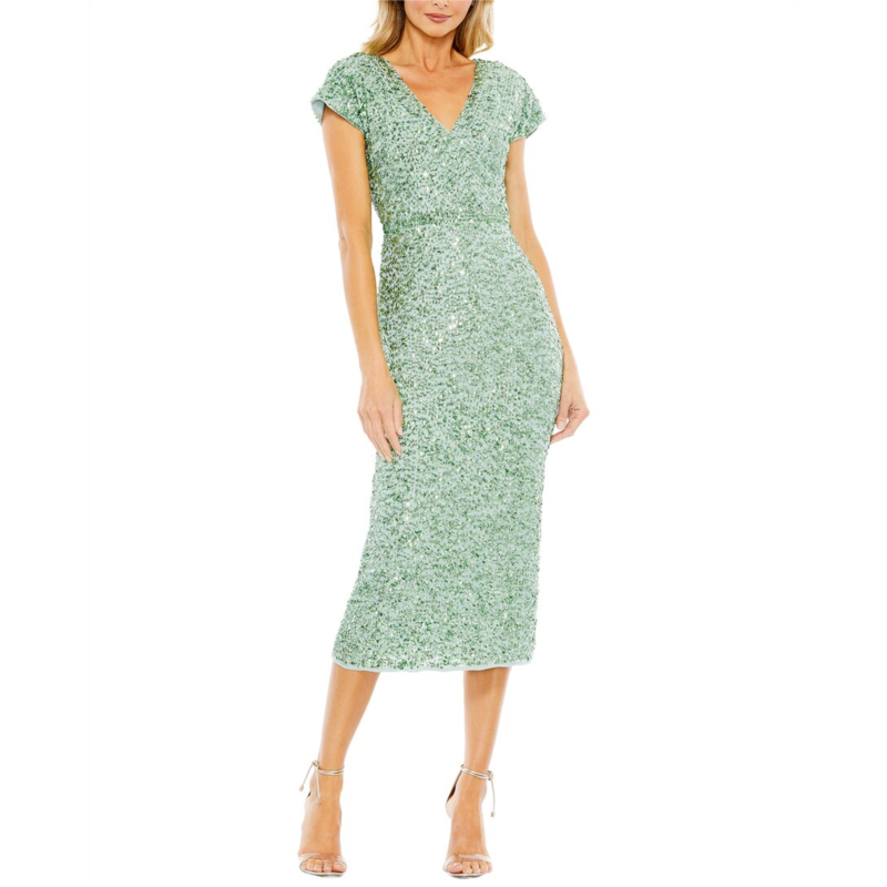 Elevate your wardrobe with the Mac Duggal V Neck Midi Dress. This stunning dress, available in a gorgeous sage color, features a flattering V neck and is made of 100% polyester. The dress measures approximately 60 inches from shoulder to hem and has a convenient center back zipper for easy wear. To care for this beautiful dress, simply spot clean and lay flat to dry. Imported for quality craftsmanship, this Mac Duggal dress is perfect for any special occasion.