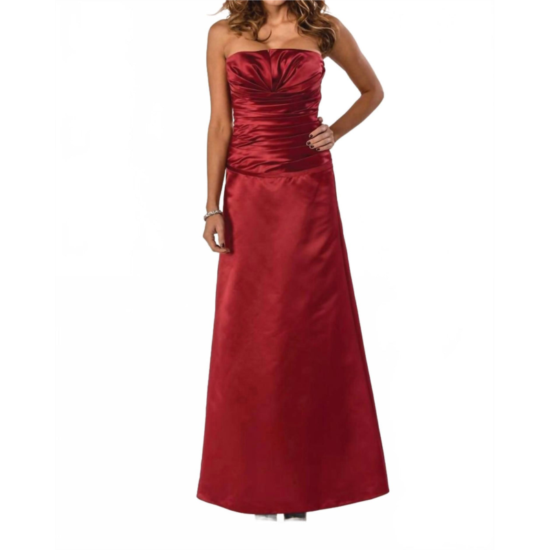 Style this maxi with your favorite statement necklace and sandals for the perfect look.The Timeless Grace Gown by Milano Formals is an embodiment of elegance, crafted to perfect your look at any formal evening event. This strapless gown showcases a charming sweetheart neckline and is made from luxe satin in a solid Claret hue. It features an A-line silhouette with a ruched satin bodice, enhancing its sophisticated appeal. Closure - Zip closure. Ideal for those minimalist style enthusiasts, it''s the ultimate choice for spring galas, weddings, and Thanksgiving festivities.