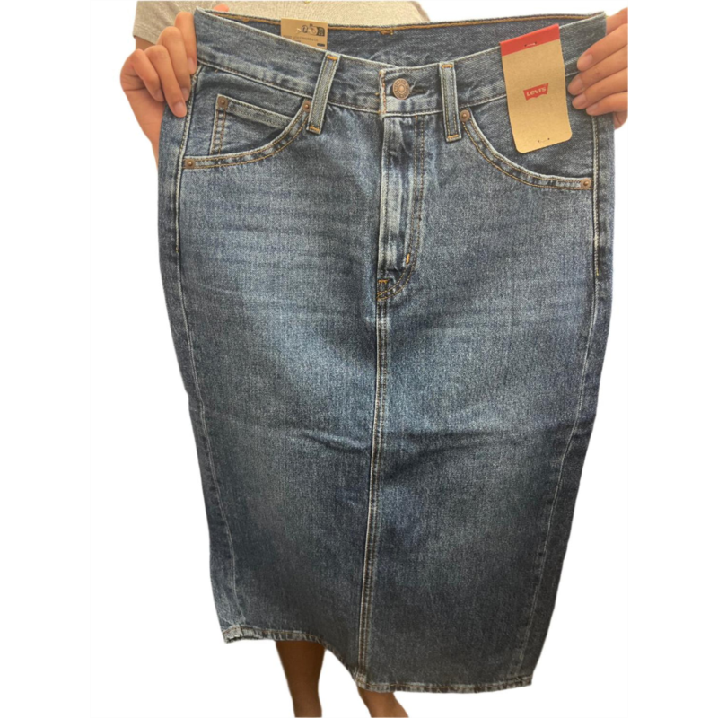 The midi length skirt is here to stay and we especially love this style.Introducing the LEVI''S Women''s High-rise Back Slit Skirt, a vintage-inspired piece in an alluring Meadow Games shade, perfect for a spring refresh. This solid, midi-length denim skirt boasts a slim fit and features a stylish back slit, ideal for channeling 90s fashion. Practicality meets style with the addition of pockets. Care - Machine wash.