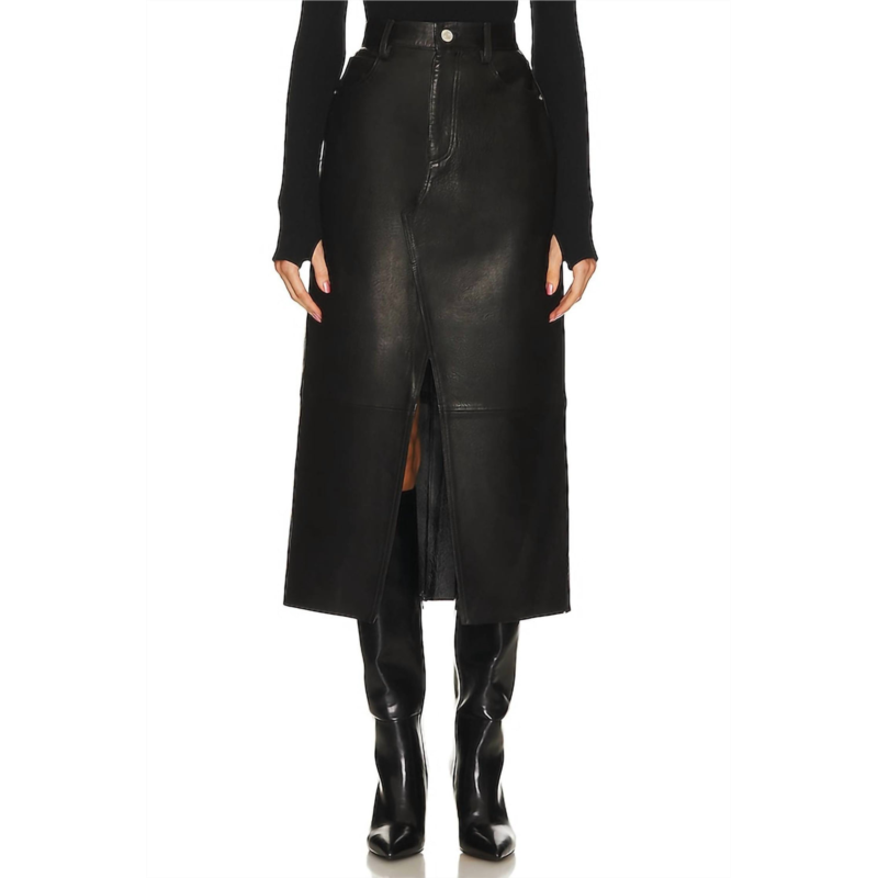 [US] FRAME leather midaxi skirt in black