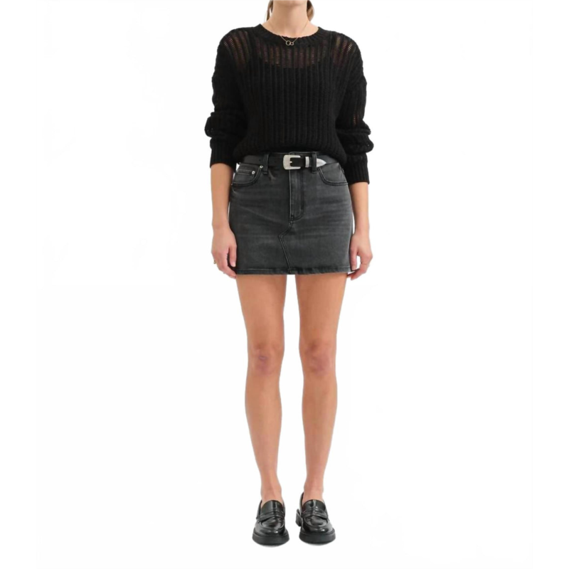 Show just the right amount of leg in this fit flattering mini.Introducing the Malibu Mid Rise Denim Skirt by DAZE, a chic addition to any spring wardrobe. This mini skirt features a flattering mid-rise cut crafted from soft, 100% cotton in a solid black color. Designed for women, it includes convenient pockets and a secure button closure. Care - Machine wash. Perfect for a vacation or Easter outing, it captures the essence of 90s fashion.