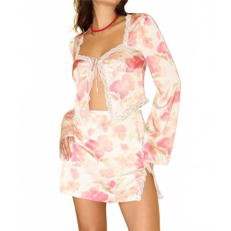 Show just the right amount of leg in this fit flattering mini.Introducing the Dreamy Floral Skirt by Bailey Rose, a mini skirt that captures the essence of spring with its vibrant sunset-inspired floral pattern. Made from 100% polyester, this playful piece in a multi-color palette will be your go-to for vacation or holiday occasions like Valentines Day. The pull-on design ensures effortless wear, while its playful Y2K trend influences make it a must-have for any wardrobe. Although pockets are absent, this skirt offers undeniable style for women looking to make a statement.