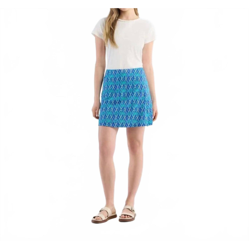 The cutest skort that combines style and functionality.Introducing the Capelton Road Skort by Hatley, an eye-catching addition to your summer wardrobe in Sundial Mandala. This skort features a wide waistband with elastic for comfort and a side zipper closure for ease. Crafted from a durable 88% Nylon and 12% Spandex blend, it also offers UPF 50 protection and a practical pocket. Care - Machine wash. Ideal for boho chic summer vacations, this bold, patterned piece is available in sizes XS to XL. Model Megan is wearing a size XS.