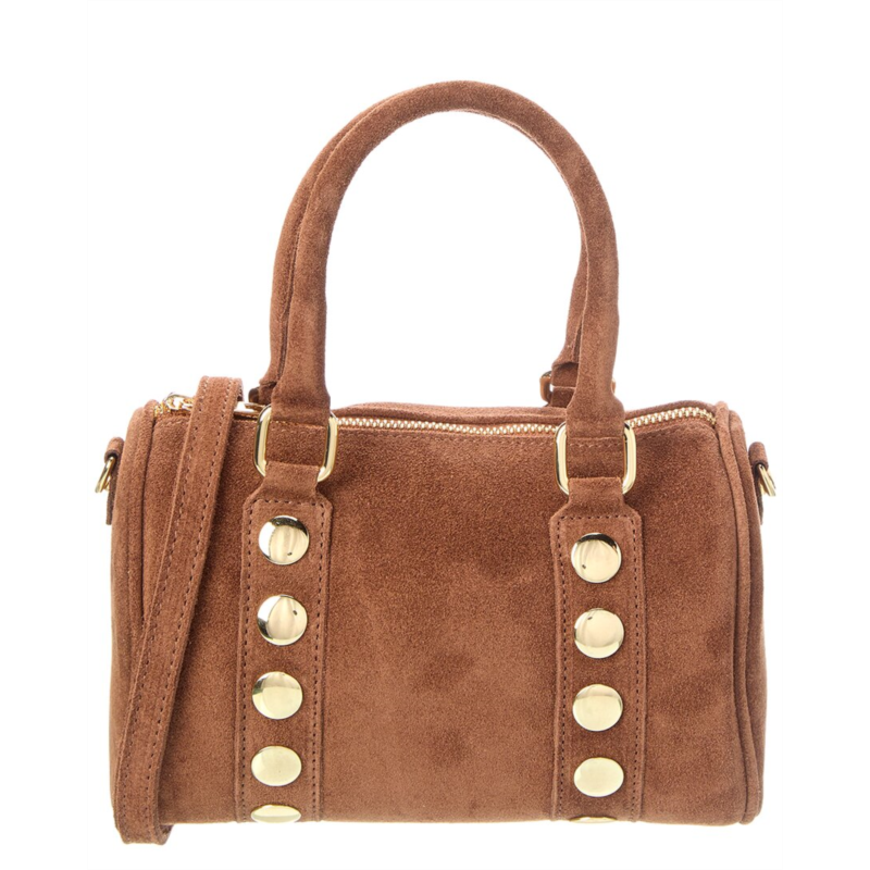 Introducing the Persaman New York Gabriela16 Studded Leather Shoulder Bag, a stylish and luxurious addition to any womans wardrobe. This stunning handbag is crafted from brown leather with eye-catching gold-tone hardware, adding a touch of elegance to any outfit. Made in Italy, this handbag measures 7 inches wide by 6 inches high by 3 inches deep, providing ample space for all of your essentials. The shoulder strap drops 51 inches, making it comfortable and convenient to carry.Please note that all measurements were taken by hand and are approximate; slight variations may occur. Elevate your look with the Persaman New York Gabriela16 Studded Leather Shoulder Bag, the perfect accessory for any occasion.