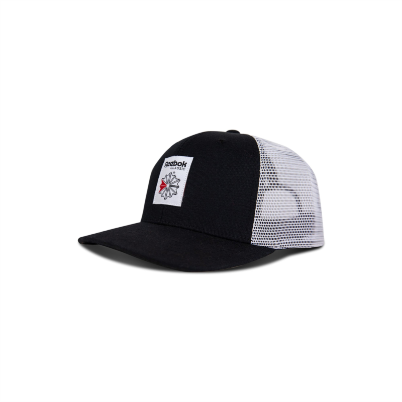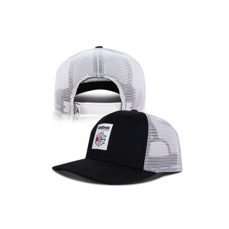 The Reebok Woven Patch Vector Trucker Cap combines heritage style with breathable comfort. Featuring a full crown, structured construction and medium pre-curved brim, it’s made from durable cotton canvas with mesh back panels for airflow. A cotton twill sweatband wicks moisture, while the adjustable snapback closure ensures a custom fit. Finished with a woven patch Vector logo for a classic Reebok touch.