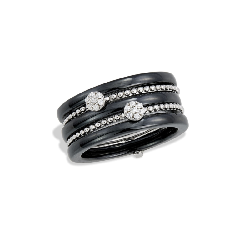 RHODIUM PLATED OVER STERLING SILVER .925 BLACK CERAMIC WITH CUBIC ZIRCONIA MULTI BAND RING IT IS THE PERFECT COMBINATION OF ELEGANCE AND STYLE TO ENHANCE YOUR OUTFIT AT ANY TIME.