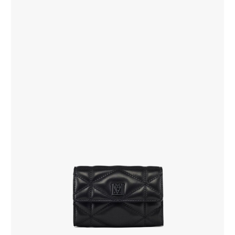 Quilted leather card holder with MCM logo snap closure