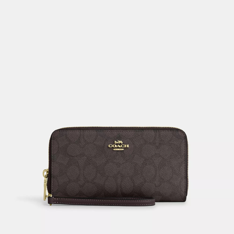 [US] Coach Outlet long zip around wallet with detachable card case in signature canvas