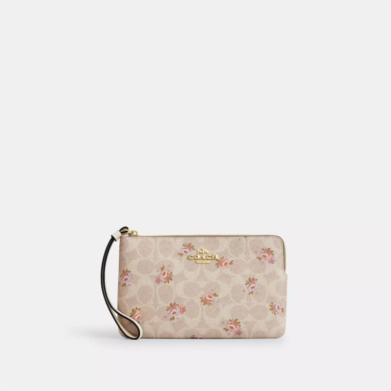 [US] Coach Outlet large corner zip wristlet in signature canvas