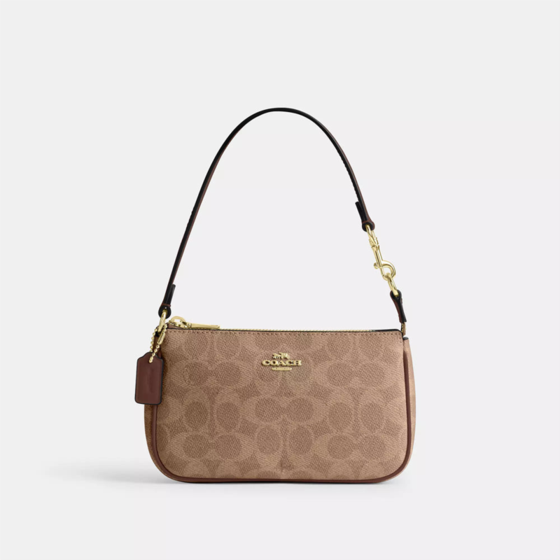 Signature coated canvas Two credit card slots Zip-top closure fabric lining Handle with 6 1/4 drop 7 1/2 (L) x 4 1/2 (H) x 2 (W) Style No. CW426 | Coach Outlet Nolita 19 In Signature Canvas - Brown