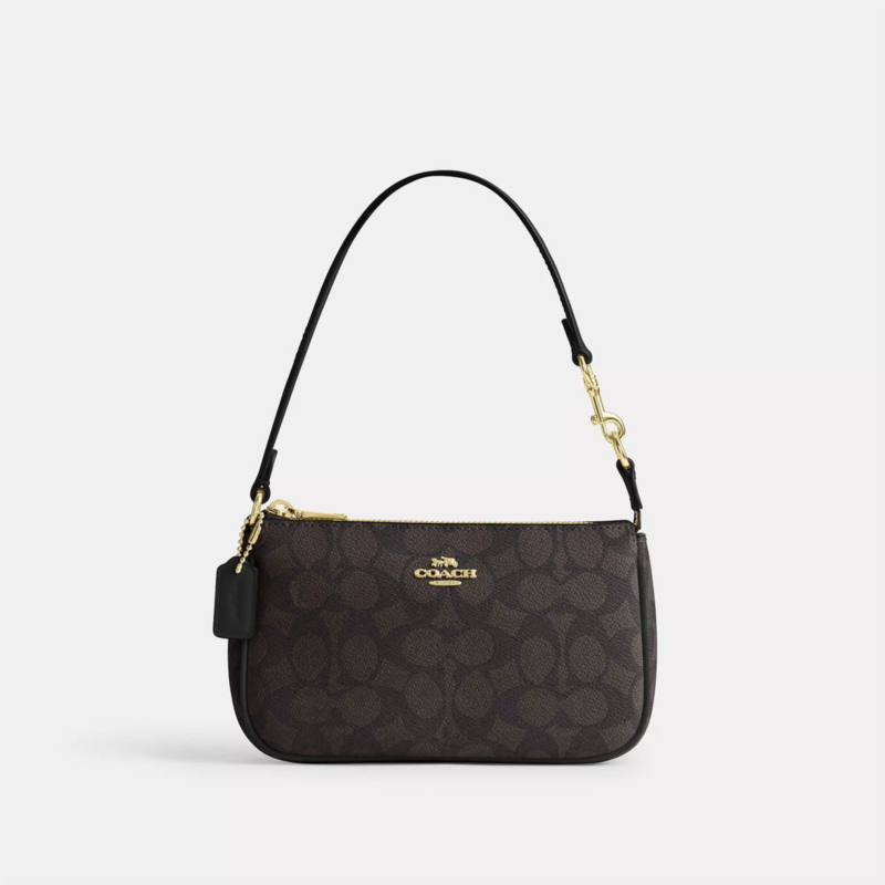 Signature coated canvas Two credit card slots Zip-top closure fabric lining Handle with 6 1/4 drop 7 1/2 (L) x 4 1/2 (H) x 2 (W) Style No. CW426 | Coach Outlet Nolita 19 In Signature Canvas - Beige