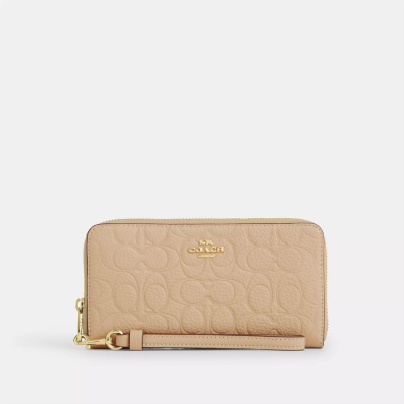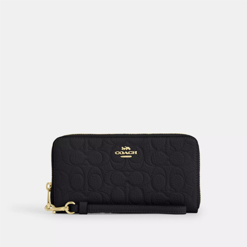 Signature refined pebble leather and refined pebble leather 12 credit card slots Full-length bill compartments Inside zip coin pocket Zip-around closure Detachable wrist strap 7 1/2 (L) x 4 (H) x 1 (W) Fits all iPhone and Samsung Galaxy phones Style No. CCL35 | Coach Outlet Long Zip Around Wallet In Signature Leather - Black