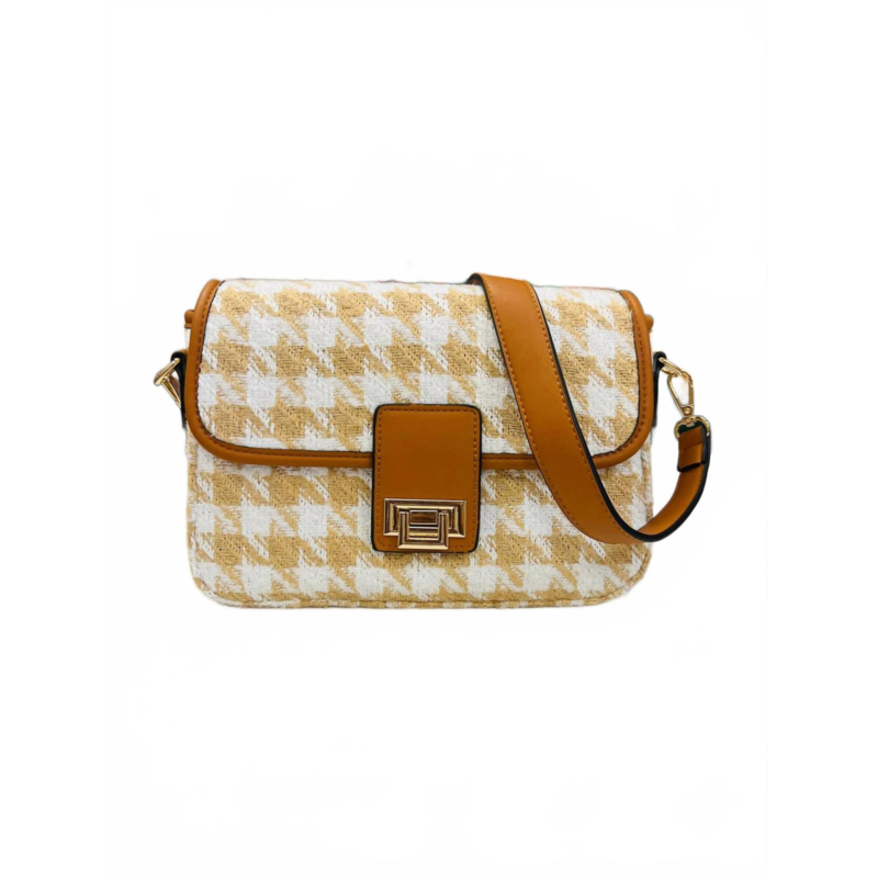 [US] Jen & Co. womens houndstooth style icon purse crossboday bag in tan/white