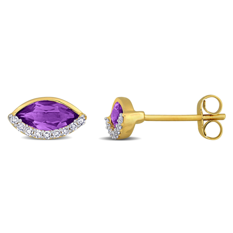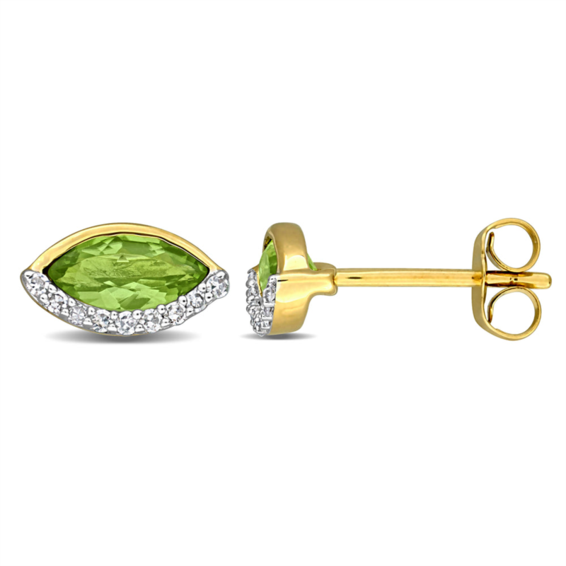 [US] Mimi & Max 1 1/8ct tgw peridot and 1/10ct tw diamond stud earrings in 14k yellow gold