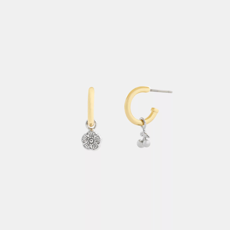 [US] Coach Outlet mini tea rose and cherry charm hoop earrings