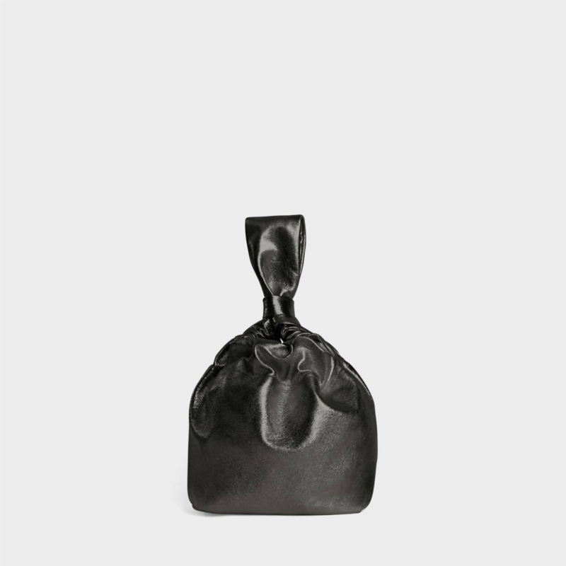 Small in size but a total statement maker.Introducing the Womens Mariposa Twist Clutch Handbag by Lemiz in a striking silver hue, handcrafted from supple Italian lamb leather. Thoughtfully designed with a wristlet strap, this clutch ensures hands-free convenience, making it an ideal travel companion. Its soft silhouette is complemented by a cotton canvas lining and an inside pocket for organization, comfortably fitting an iPhone Max. Handcrafted in Los Angeles, this mini bag has dimensions of 6.5 width, 6.5 depth, and 7 height, perfect for carrying your essentials.