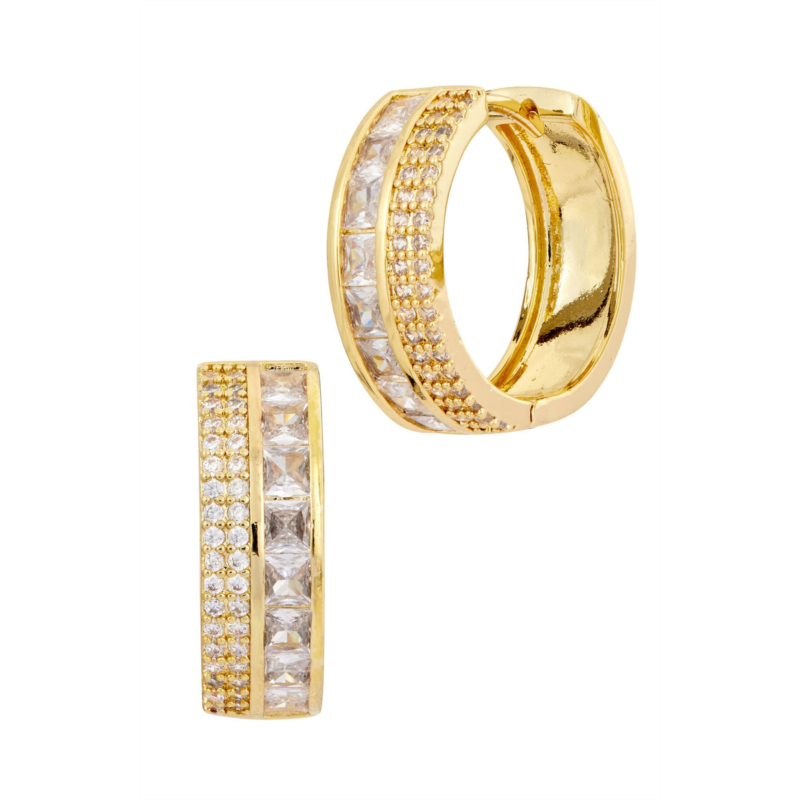 [US] SAVVY CIE JEWELS 18k yellow gold plated multistone white cz hoop earrings