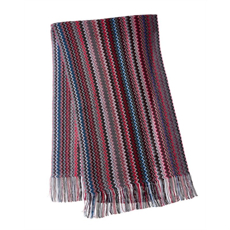 Introducing the Missoni Wool-Blend Scarf, a must-have accessory for any fashion-forward woman. This luxurious scarf features a stunning multicolor design with fringe trim, adding a touch of elegance to any outfit. Made from a cozy blend of 50% wool and 50% acrylic, this scarf measures 83 inches long by 13.5 inches wide, providing ample warmth and style. Crafted in Italy, this scarf is a high-quality piece that is sure to become a staple in your wardrobe. Please note that all measurements were taken by hand and are approximate, so slight variations may occur. Elevate your look with the Missoni Wool-Blend Scarf today!