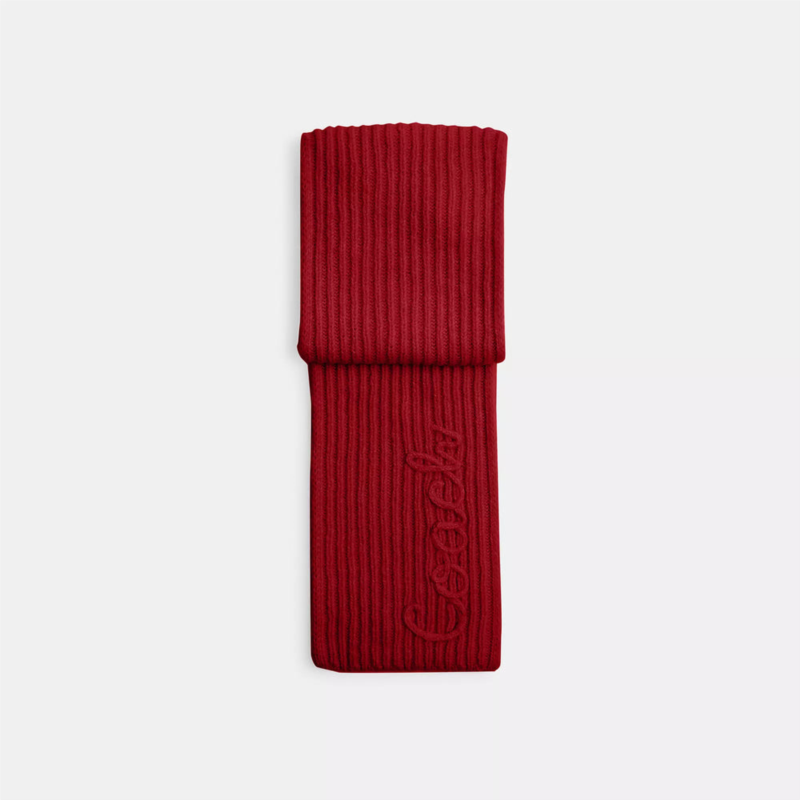 52% merino wool 31% nylon 17% alpaca 78 x 9 Style No. CCT71 | Coach Outlet Coach Script Knit Muffler - Red