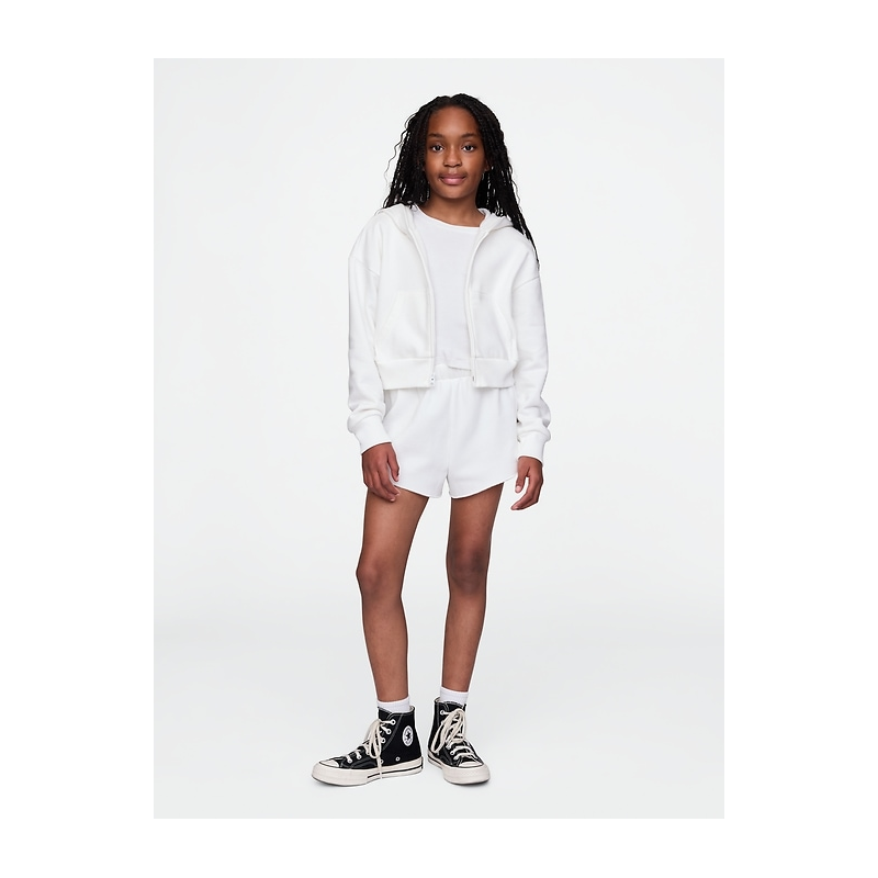 - Soft cotton-blend fleece, relaxed sweat shorts.