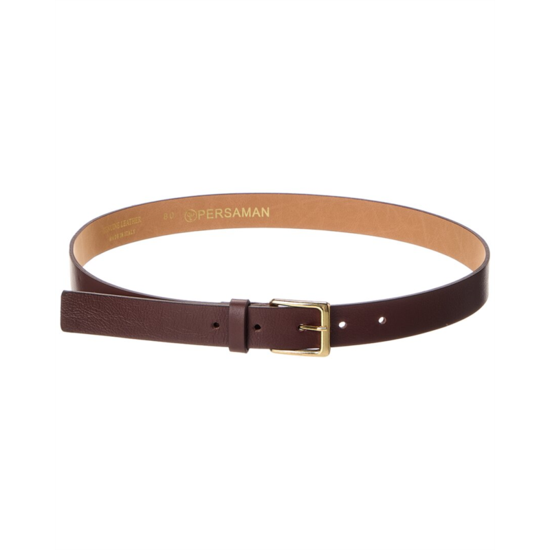 Elevate your look with the Persaman New York Brinley16 Leather Belt. Crafted in Italy from luxurious brown leather, this belt features striking gold-tone hardware for a touch of glamour. Measuring 1.5 inches wide, this chic accessory is the perfect addition to any outfit. Please note that all measurements were taken by hand and are approximate, slight variations may occur. Add a touch of sophistication to your wardrobe with this stylish belt from Persaman New York.