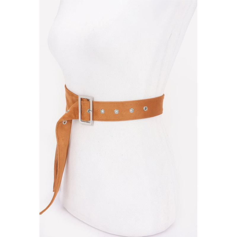 FASHNZFAB womens faux suede fringe belt