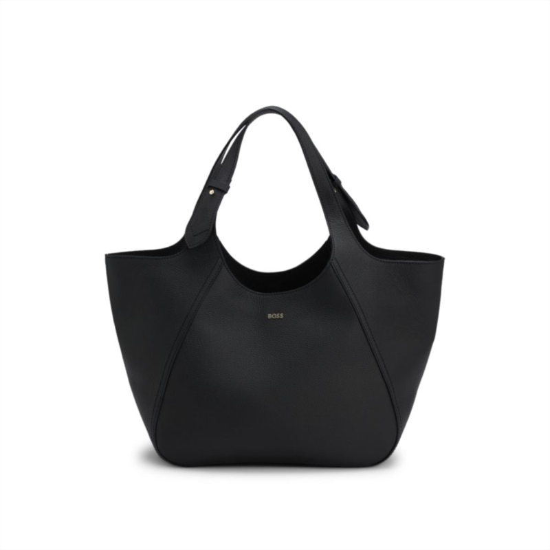 Trimmed with gold-tone logo lettering, this BOSS Womenswear tote bag is roomy enough for all your essentials. Crafted in richly grained leather. Measurements - 26.5 x 46 x 14cms.