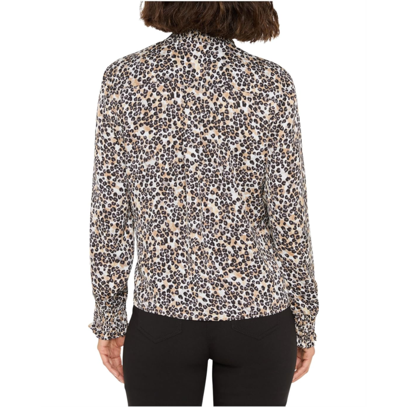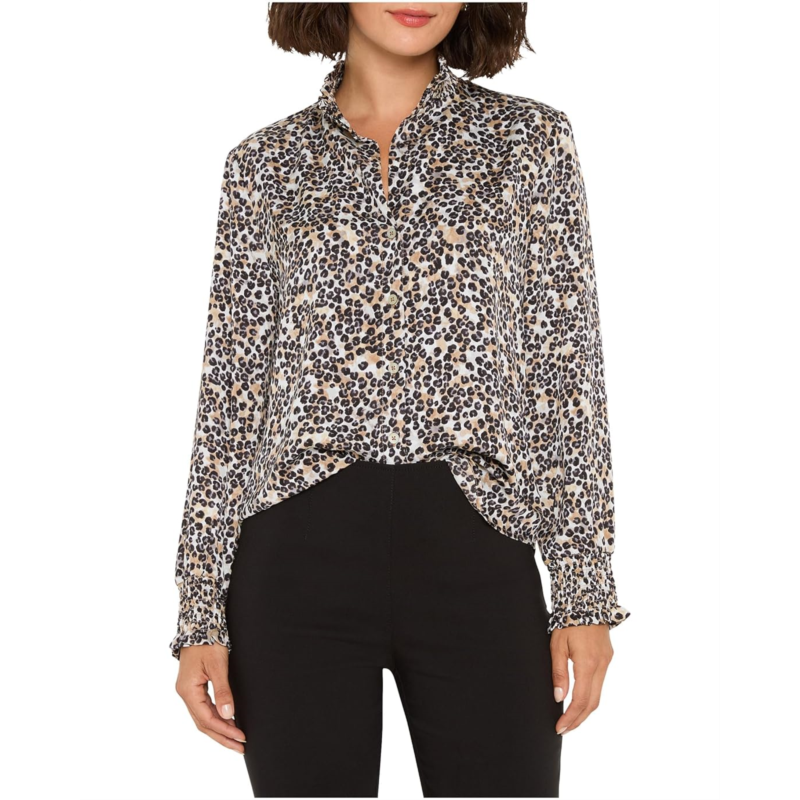 - The Little Leopard Top brings a touch of wild sophistication to your wardrobe. Crafted from airy satin chiffon, it features a geo-inspired leopard print that feels fresh, modern, and endlessly versatile. Smocking at the collar and cuffs adds a feminine finish, while the relaxed fit makes it effortless to wear. In a neutral palette that pairs perfectly with black, white, denim, and beyond, this blouse is your easy go-to for elevating every outfit.