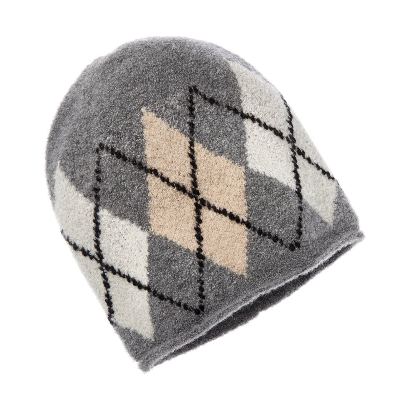 [US] Amicale Cashmere large argyle boucle cashmere beanie