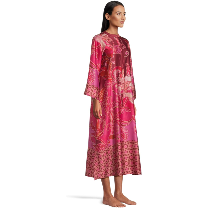- The Natori Deco Zip Caftan is a statement-making lounge piece that blends luxurious comfort with eye-catching design. Crafted from wrinkle-resistant fabric with a sleek, glossy hand feel, it offers graceful elegance whether youre relaxing at home or hosting guests. The bold and festive prints add seasonal flair, while the quarter zip-front closure provides ease and versatility.