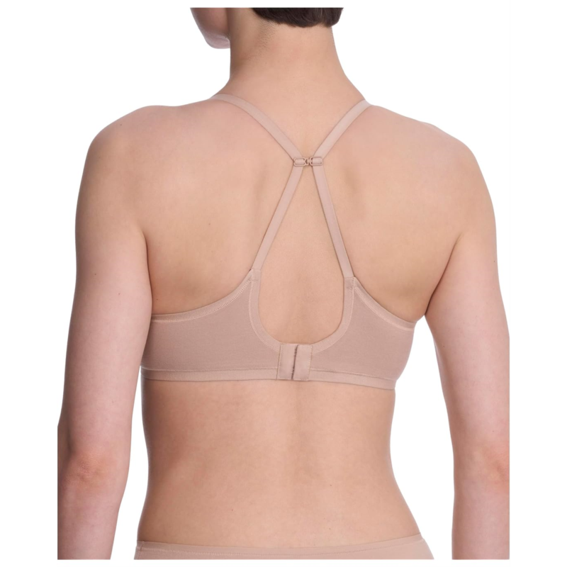 - Feel beautiful and confident inside out wearing the Natori Bliss Cotton Convertible T-Shirt Bra. Featuring sweetheart neckline with slight plunge, molded stretch, breathable pima cotton fabric, front adjustable straps with j-hook at the back to convert to racerback, and pad print at back for tagless comfort.