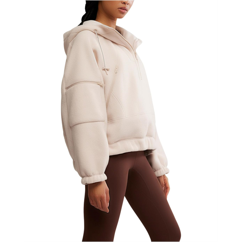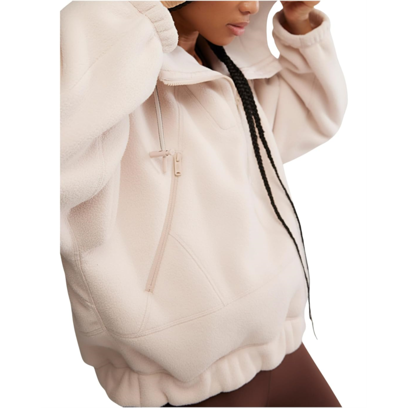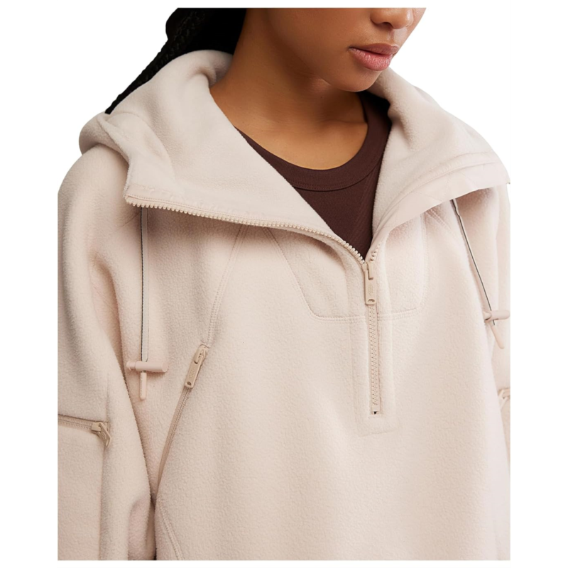 - Fashionable and comfortable, theFP MovementWild And Free Fleece Pull Hoodie presents the perfect blend of both for everyday casual wear. The hoodie features a slouchy, scuba style with snood-inspired neckline, hooded design, half-zipper front closure, exaggerated zippered pockets throughout for added functionality, and elasticated bottom hem.