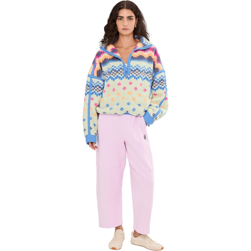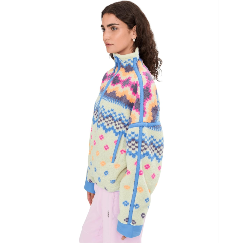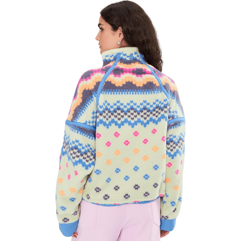 - Throw on a cozy layer of comfort on those chilly days in the FP Movement Printed Mountain High 1/2. Featuring a high neckline with a half-zip closure, long sleeves, dropped shoulders, and a boxy, relaxed fit that is slightly cropped.