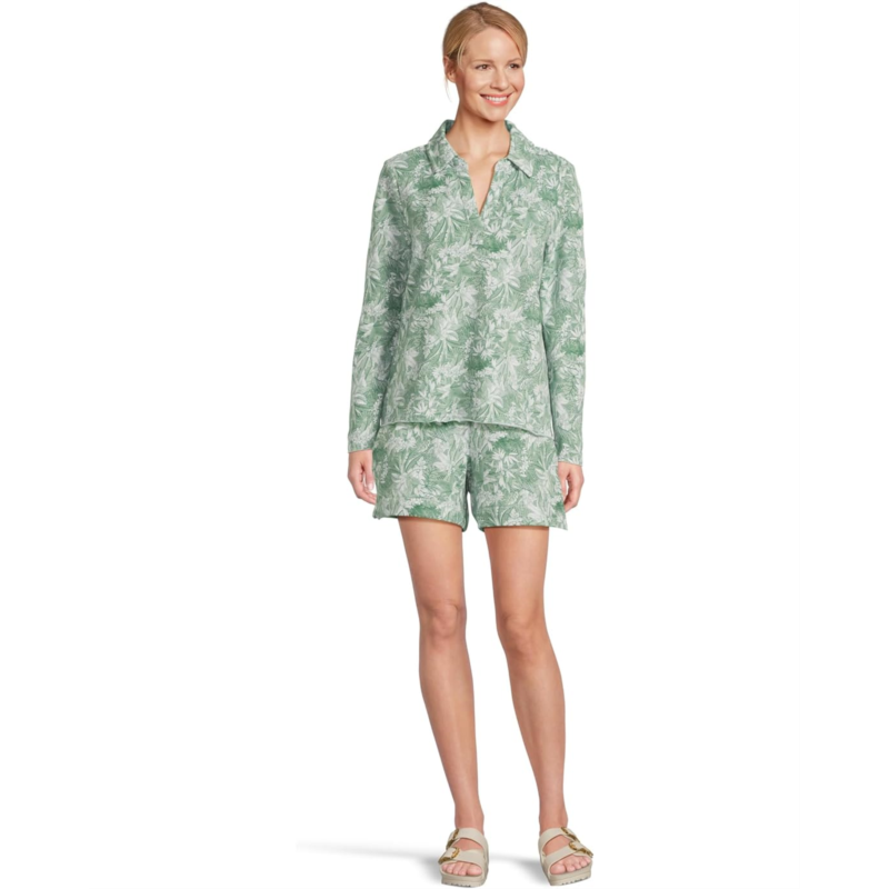 - Slip into pure paradise wearing the Tommy Bahama Marina Del Mar Forte Fronds Shorts, where laid-back comfort meets coastal charm. Crafted from ultra-soft, lightweight brushed-back fleece, these shorts offer a buttery-smooth feel that moves with you, perfect for lounging seaside or strolling through sunlit streets. The high-rise, flat-front silhouette delivers a flattering fit, while the elastic drawstring waist ensures easy pull-on comfort and adjustable wear. Complete with side seams and back pockets, these printed shorts combine effortless utility with tropical flair.